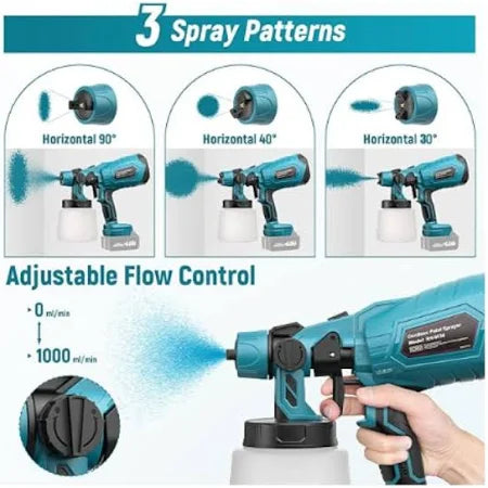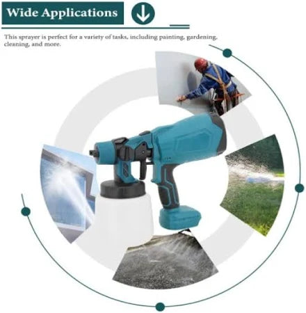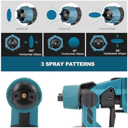 - Especificaciones: Nombre del producto: pistola pulverizadora de pintura eléctrica Voltaje nominal: 220VForma de pulverización: tres ajustables Capacidad de la regadera: 1200MLDiámetro de la boquilla: 1,3/1,5/1,8/2,5/2,7mmFlujo máximo: 200 ml/min Viscosidad máxima: 8-12SCapacidad: 800MLFuente de alimentación: Batería Batería compatible: para batería Makita 36VLa máquina adaptada para batería Makita de 36V√ Compatible con baterías de litio de la serie 36V B, Características: El pulverizador de pintura de 150 vatios proporciona un patrón de pulverización preciso, creando un acabado suave y superior. Con un contenedor de alta capacidad de 800ml, será su mejor pulverizador de pintura eléctrica para cercas, terrazas, techos, mesas, sillas y paredes exteriores interiores de la casa. 3 patrones de pulverización diferentes: horizontal, vertical y circular para la mayoría de los proyectos de pintura. usar y Lavar-Este pulverizador de pintura es fácil de usar, fácil de montar y fácil de rociar. Con accesorios de limpieza empaquetados, puede limpiarlo de manera fácil y eficiente Perfecto para todos los proyectos de pintura, ya que filtran partículas de hasta 190 micras. Y funciona para todo tipo de pinturas a base de solvente o agua, manchas, barnices, epoxi, látex y otros líquidos. Por lo tanto, antes de usar este pulverizador de pintura, asegúrese de diluir la pintura de acuerdo con las instrucciones.