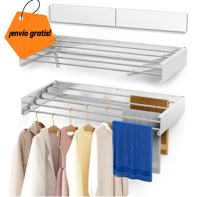 ¡Dale la bienvenida a una solución innovadora para secar tu ropa de forma eficiente! El Tendedero Discreto Para Pared se presenta como el aliado perfecto para simplificar tu rutina diaria de lavandería. Con un diseño inteligente con materiales de alta calidad, este tendedero ofrece una combinación imbatible de funcionalidad.- Amplio Espacio de Secado: Con un ancho abierto de 80 cm, este tendedero ofrece un generoso espacio para colgar tus prendas, asegurando un secado rápido y uniforme.- Portabilidad: Su diseño horizontal y plegable lo convierte en una opción ideal para espacios reducidos. Además, su portabilidad te permite llevar contigo a donde sea que vayas, ya sea en tu hogar, apartamento o durante tus viajes.- Construcción Duradera: Fabricado con acero resistente, este tendedero garantiza una sólida estructura que soporta el peso de tu ropa sin problemas, asegurando una larga vida útil.- Facilidad de almacenamiento: Su capacidad de plegado rápido te permite guardar el tendedero de manera compacta cuando no está en uso, ocupando un mínimo espacio en tu hogar.- Colocación en el suelo: Su diseño de piso horizontal te brinda la libertad de ubicarlo en cualquier lugar que te resulte más conveniente, sin la necesidad de montajes ni instalaciones complicados.